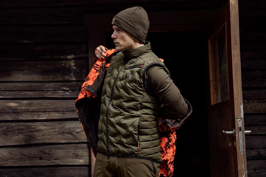 Il gilet è alimentato tramite power bank USB (non incluso) e integra un ampio pannello riscaldante sulla schiena, ideale per mantenere il busto caldo anche durante lunghe sessioni statiche come appostamento o altana.