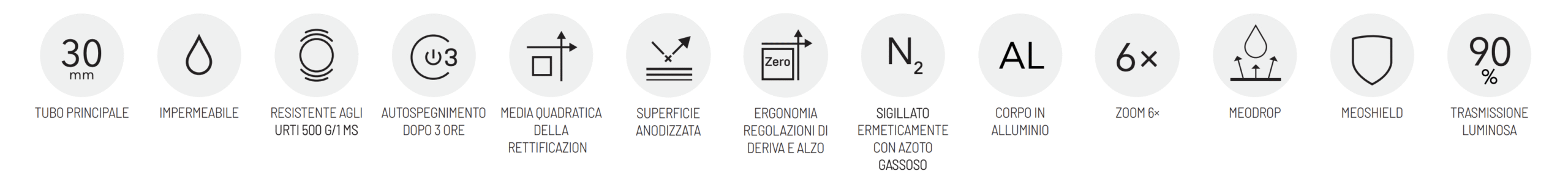 Il corpo del MeoPro R6 è realizzato in lega di alluminio aeronautico, garantendo resistenza a urti, rinculo e condizioni ambientali estreme. L’ottica è impermeabile, antiappannamento e riempita in azoto, assicurando prestazioni affidabili anche sotto pioggia, neve o sbalzi termici.